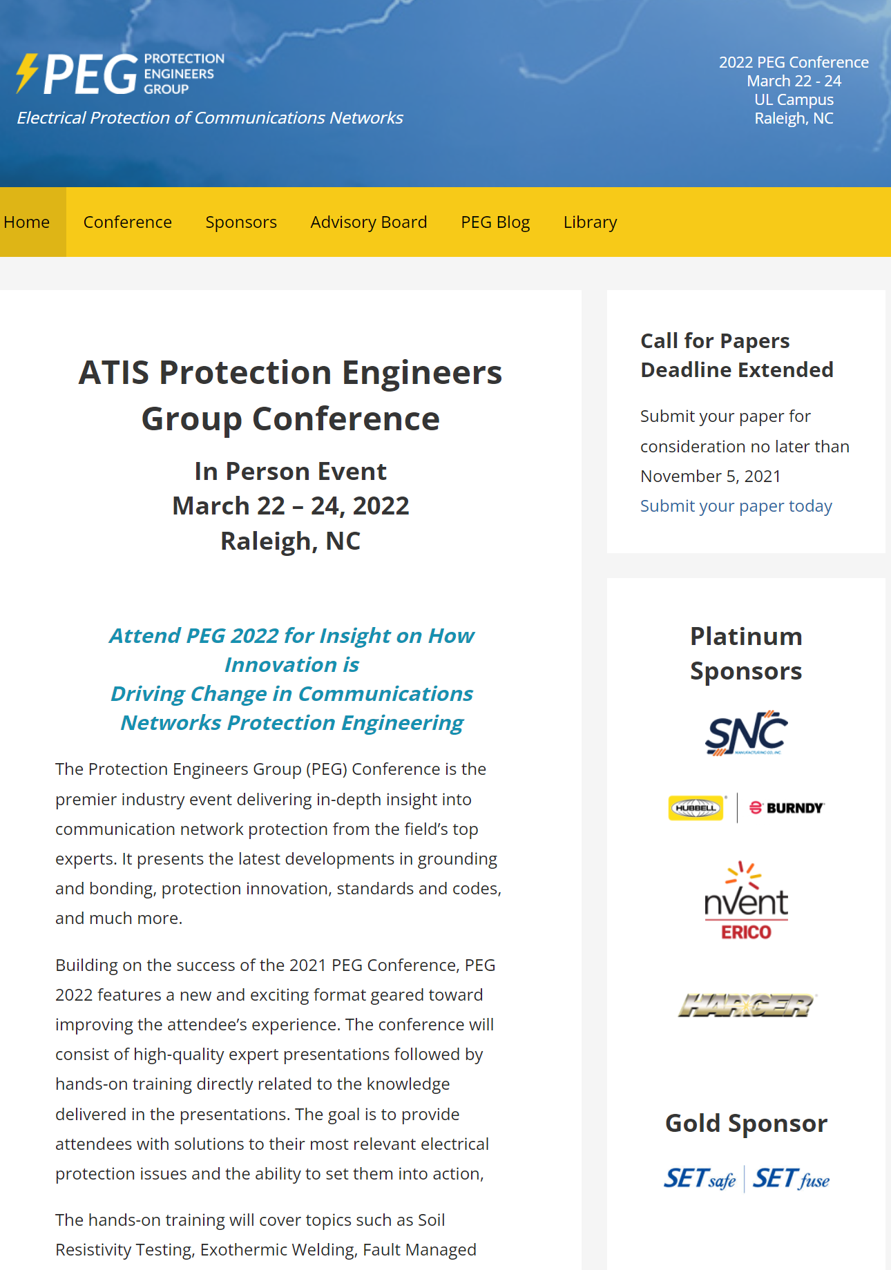 The Protection Engineers Group (PEG) Conference is the premier industry event delivering in-depth insight into communication network protection from the field’s top experts. The conference will consist of high-quality expert presentations followed by hands-on training directly related to the knowledge delivered in the presentations. The hands-on training will cover topics such as Soil Resistivity Testing, Exothermic Welding, Fault Managed Power Systems and much more.
