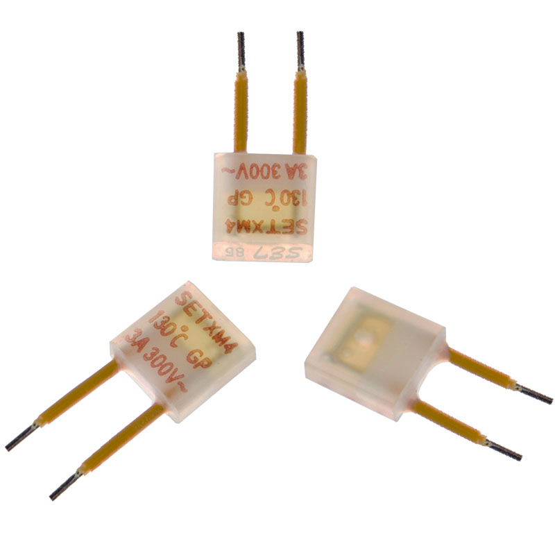Thermal-Link (ATCO) - Alloy Type is defined as a non-resettable protective device functioning one time only that uses low melting point fusible alloy as temperature sensing material. Normally, fusible alloy is jointed to the two lead wires, Under abnormal conditions, when the temp. reaches to the fusing temp. of ATCO, the fusible alloy melts and quickly retracts to the two lead wire ends with the aid of the flux resin and disconnects the circuit completely. ATCO is mainly consist of fusible alloy, flux resin, case, sealant and lead wires. ATCO products are widely used in electrical equipment. SETsafe | SETfuse Thermal-Link (ATCO)-Alloy Type is divided into axial and radial types; Rated Functioning Temp. : ( 76 ~ 230 ) ̊C; Rated Current: ( 1 ~ 200 ) A; Rated voltage: (250~800) VAC; safety certification includes UL, cUL, TUV, PSE, VDE, KC, CCC, and RoHS and REACH compliant. Some common names for Thermal-Link in the application industry: thermal fuse 、thermalcutoff.