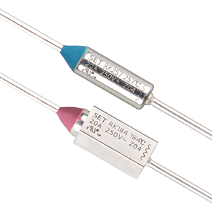 SETsafe | SETfuse Organic Thermal-Link (OTCO) RK series Rated Functioning Temp. from 72 °C to 310 °C, Rated Current: 20 A, safety certification Includes UL, cUL, and complies with RoHS and REACH.