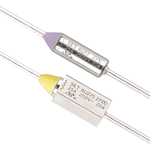 SETsafe | SETfuse Organic Thermal-Link (OTCO) RU series Rated Functioning Temp. from 72 °C to 310 °C, Rated Current: 25 A, safety certification Includes UL, cUL, and complies with RoHS and REACH.